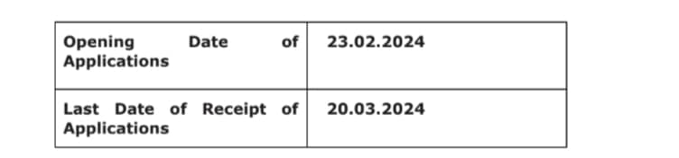 | आवेदन की प्रारंभिक तिथि | 23 फरवरी 2024 |